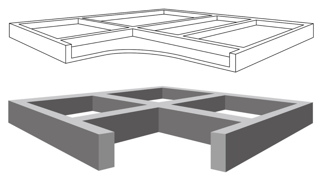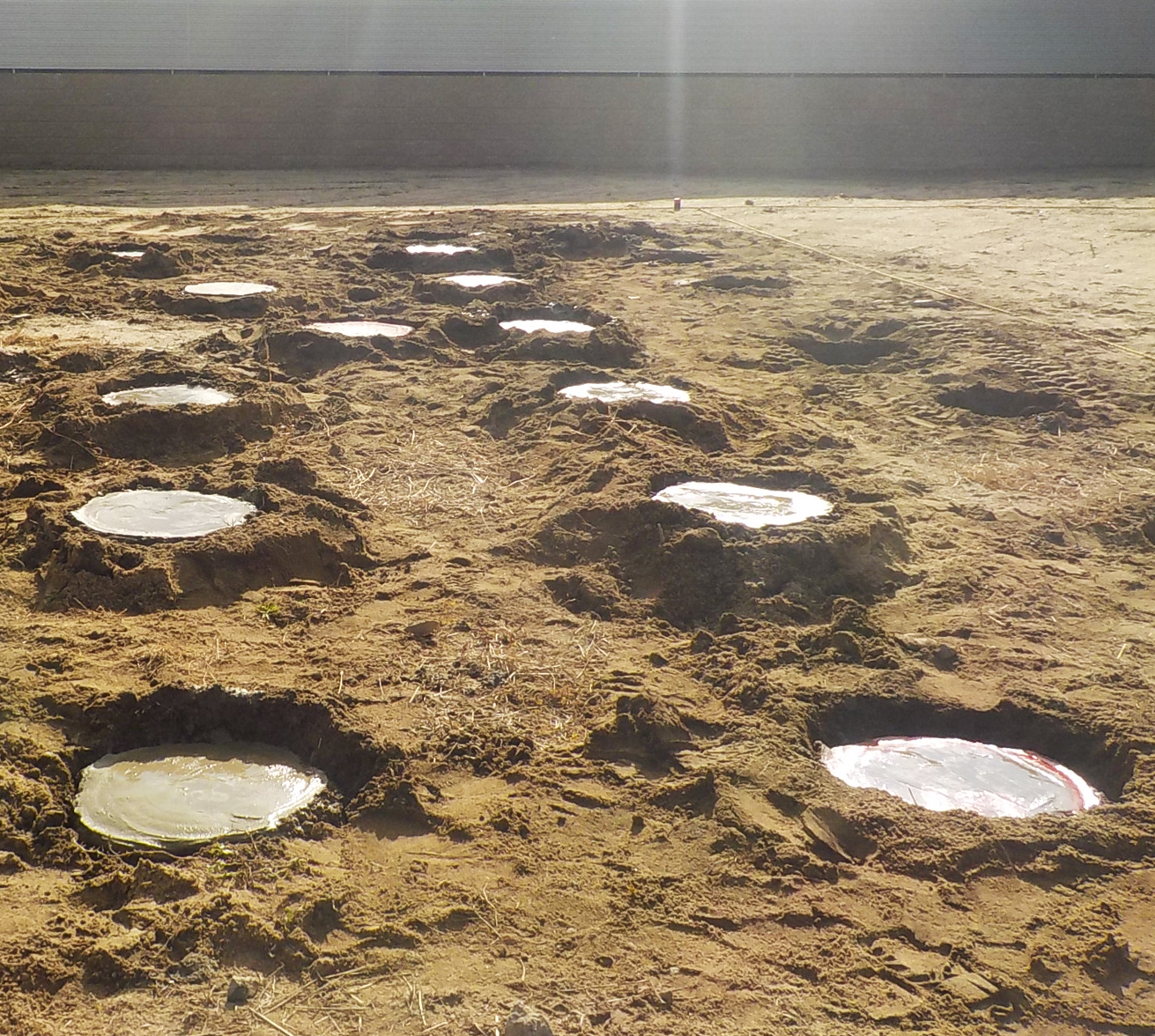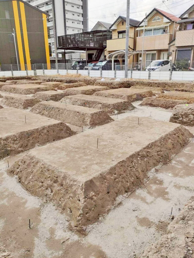 MS工法とは、一般的な柱状改良や鋼管工事が設計出来ないほどの軟弱地盤に対し、比較的ローコストで提供可能な地盤改良工事です。べた基礎の小規模建築物を対象とした浅層地盤改良工法で、設計深度0.5mから1.5mに応じて地盤に格子状の改良体を築造することで、鉛直支持力の向上と沈下の低減が図れ、従来の工法では対応できなかった地盤にも対応が可能です。